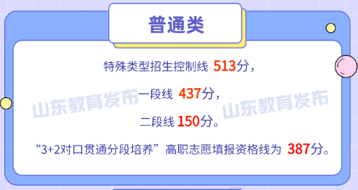 普通类:特殊类型招生控制线513分,一段线437分,二段线150分。
