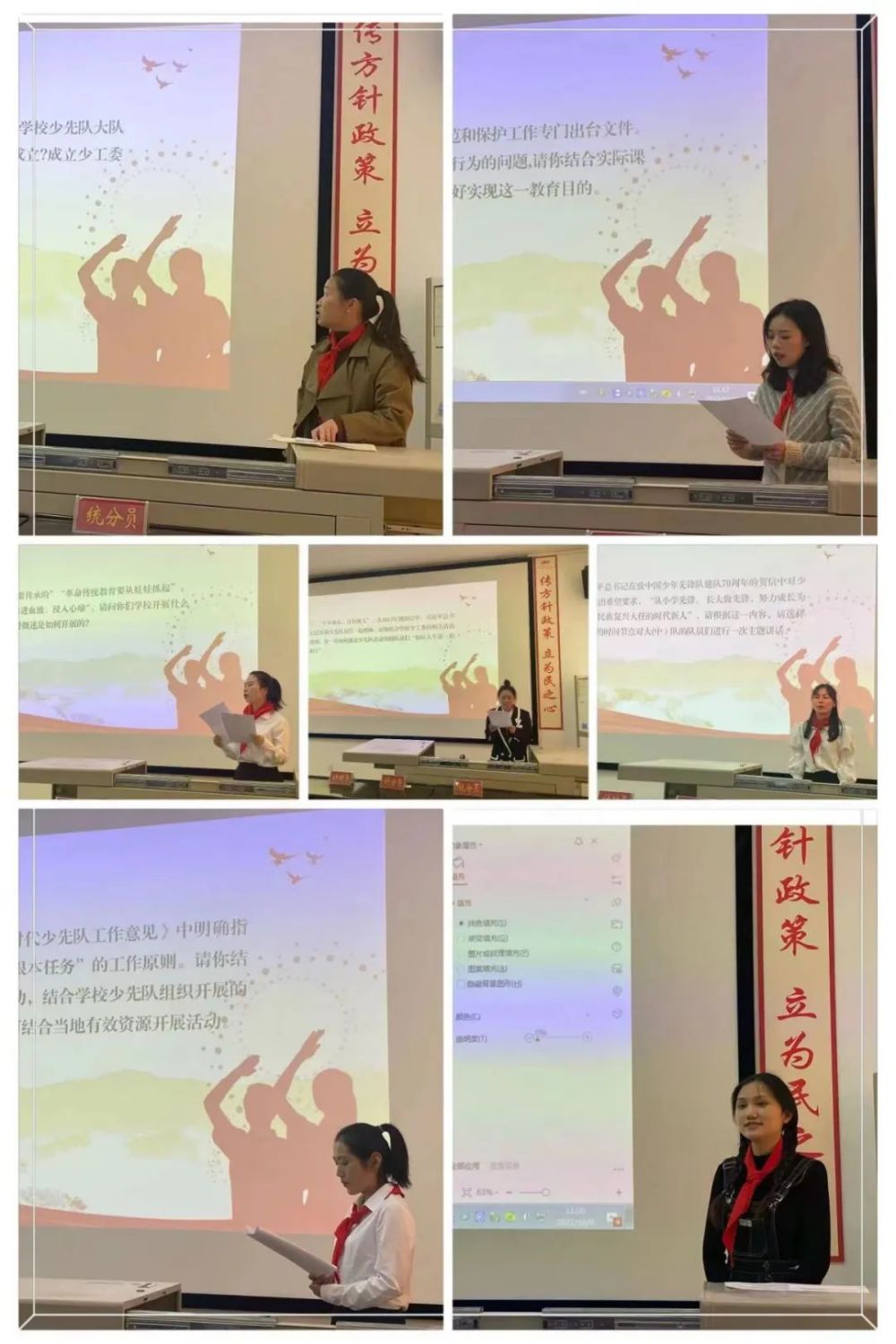 此次比赛包括主题宣讲、少先队活动案例讲解、少先队校外实践活动设计、少先队工作情景处理答辩4个环节。