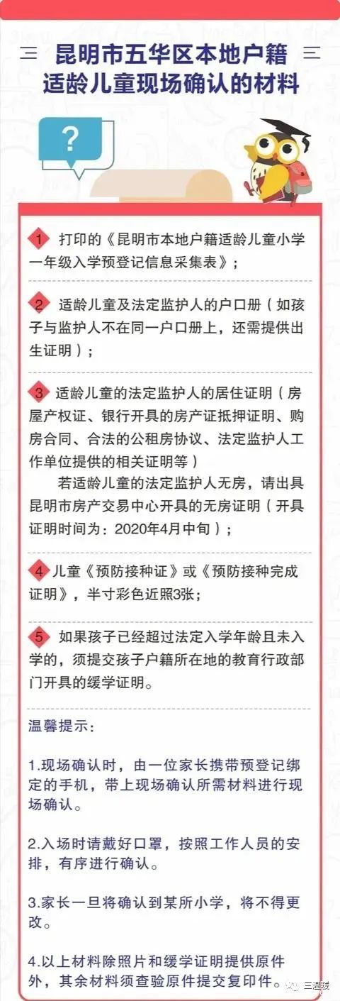 昆明市五华区本地户籍以及适龄儿童现场确认的材料。