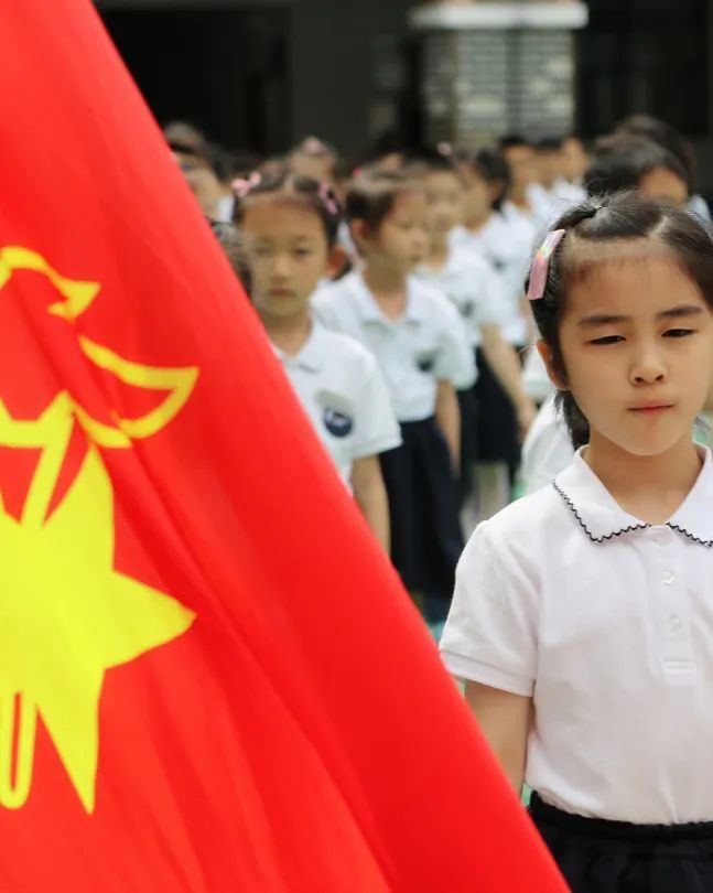 在鲜艳的队旗下,新队员们庄严宣誓,整齐洪亮的声音回荡在校园中,从新队员们坚毅的眼神中,我们看到了希望的延续,相信大家一定会在星星火炬的指引下,好好学习,在中国共产党的领导下,向着光明的未来前进。
