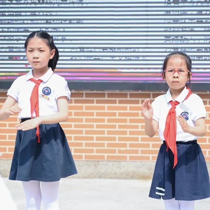 《中国少年先锋队队歌》的旋律响起,新老队员们齐唱“我们是共产主义接班人,继承革命先辈的光荣传统,爱祖国,爱人民,鲜艳的红领巾飘扬在前胸……”,在音乐声中,一张张小脸掩饰不住心中的激动与兴奋,雄伟嘹亮的歌声响彻校园,一年级队员们用稚嫩的童声表达出自己即将成为一名少先队员的喜悦与决心!