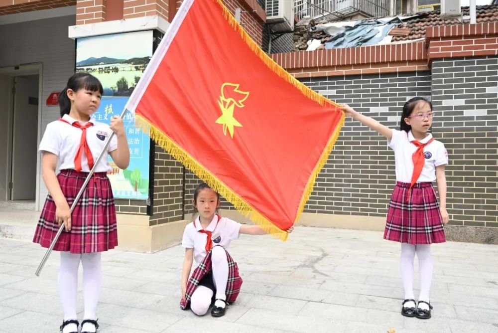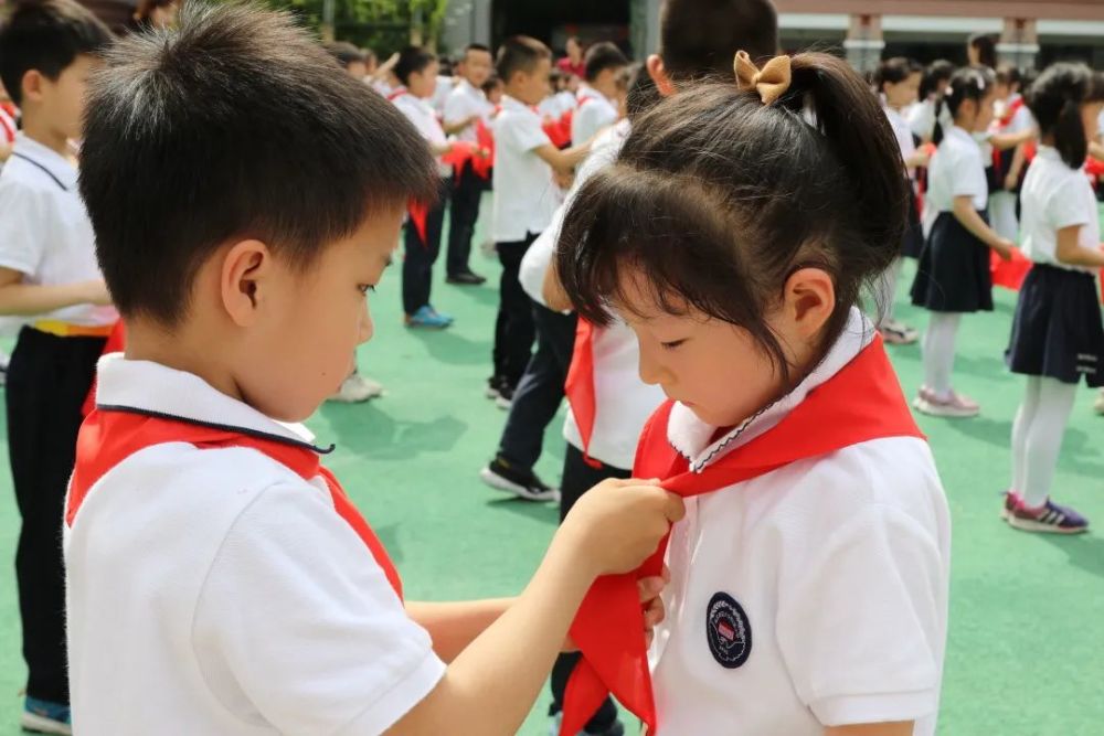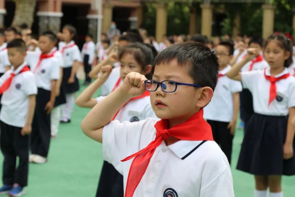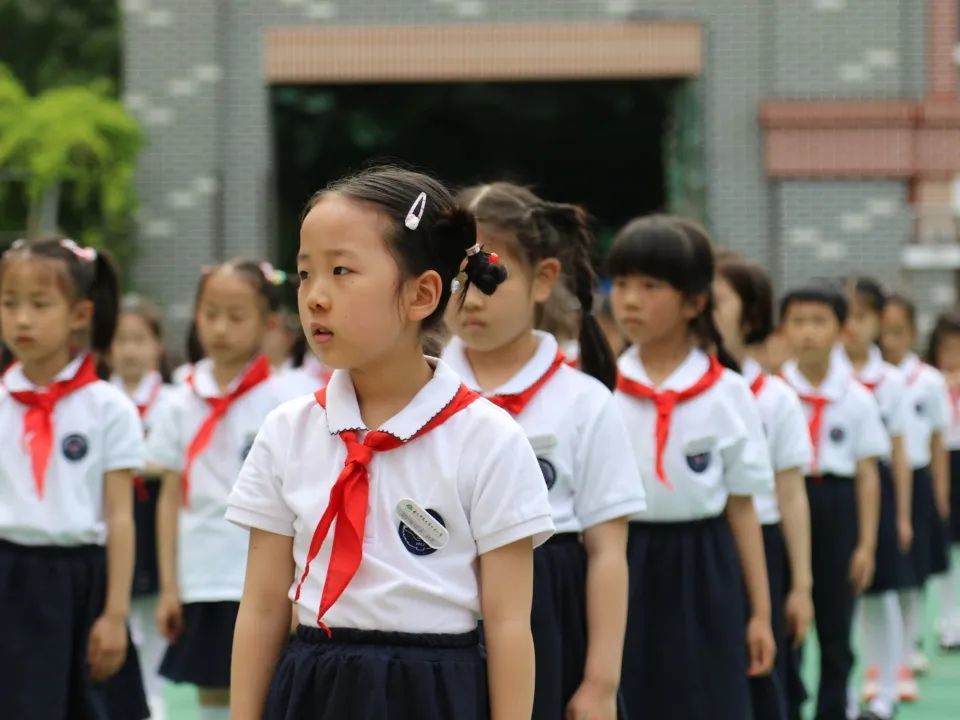 5月27日下午,全体一年级学生、二年级少先队员代表齐聚在火红的队旗下,215名首批新队员迎来了学生生涯的重要时刻——加入少先队。