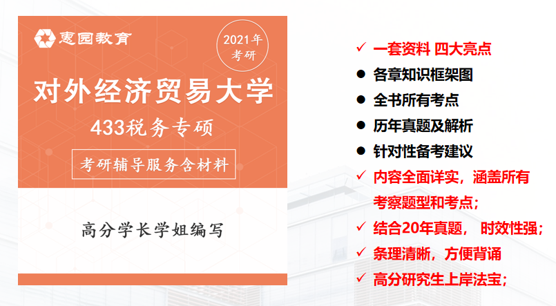 惠园教育的433红宝书,是由高分学长学姐编写,包含历年的知识点和习题,是一本很全面的考研辅导。包括资料、条例,知识点,资料的运用和考点的运用,以及框架图,因为税法非常的琐碎,所以还是要看框架图去复习,这是记忆的关键。