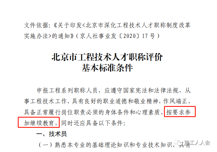 关于继续教育学时,这是一个很容易被忽略的问题,有的小伙伴熟读《北京市工程技术人才职称评价基本标准条件》,上面确确实实没有具体要求学时内容,所以这点我无力反驳。因为标准条件不是我写的!