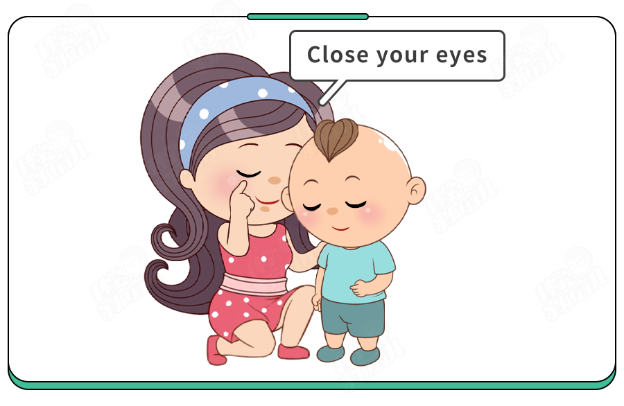 通过表演一边闭眼睛,一边说Close your eyes,让孩子明白这是闭眼的意思。