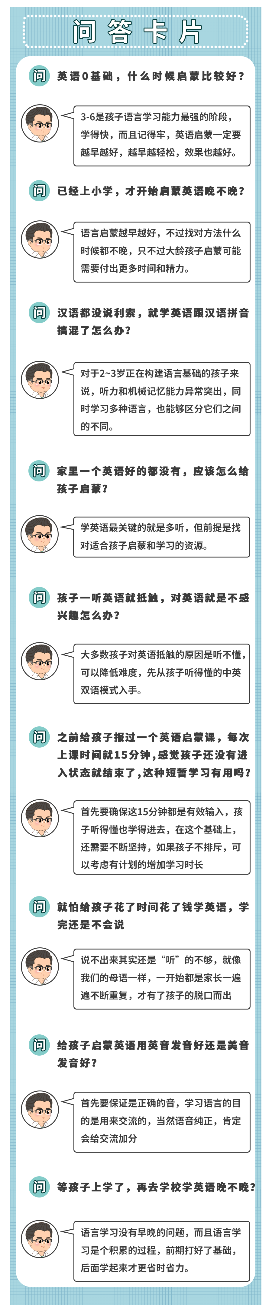 先来回答一下大家对于英语启蒙,问的最多的几个问题: