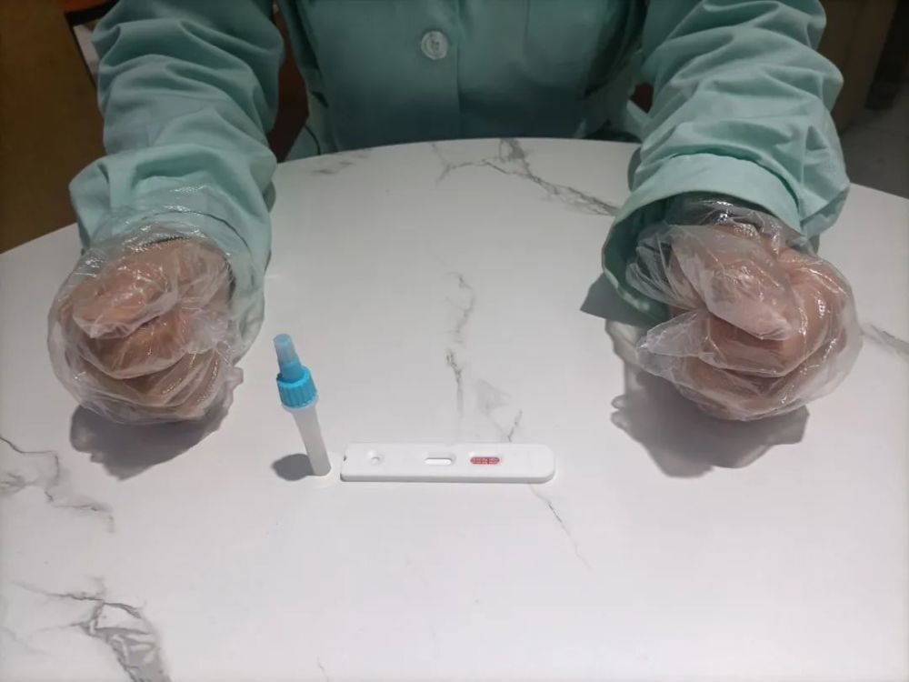 销售人员介绍,如是阳性结果,肉眼观察可见两条清晰的红色线条,一条为C线(质控线),一条为T线(检测线);如是阴性结果,肉眼观察仅可见一条红色C线(质控线)。未出现肉眼可见的红色线条或者仅出现T线(检测线)而未出现C线(质控线),为无效结果,需取新的检测卡重测。
