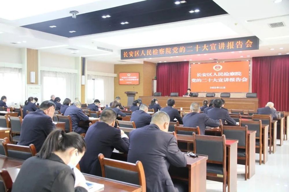 深入学习宣传贯彻党的二十大精神,教育引导干警增强“四个意识”、坚定“四个自信”、做到“两个维护”,坚持党对检察工作的绝对领导,自觉把检察工作置于全区发展大局中去谋划推进,为长安高质量提供更优更实检察产品。