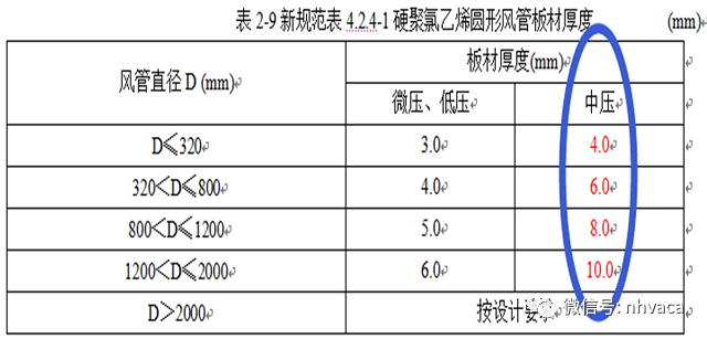 5、对硬聚氯乙烯风管使用于中压风管的厚度进行了调整