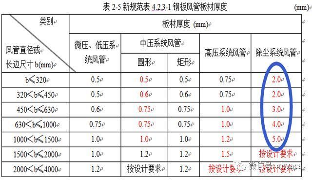 4、对有关钢板风管板材厚度进行了部分调整