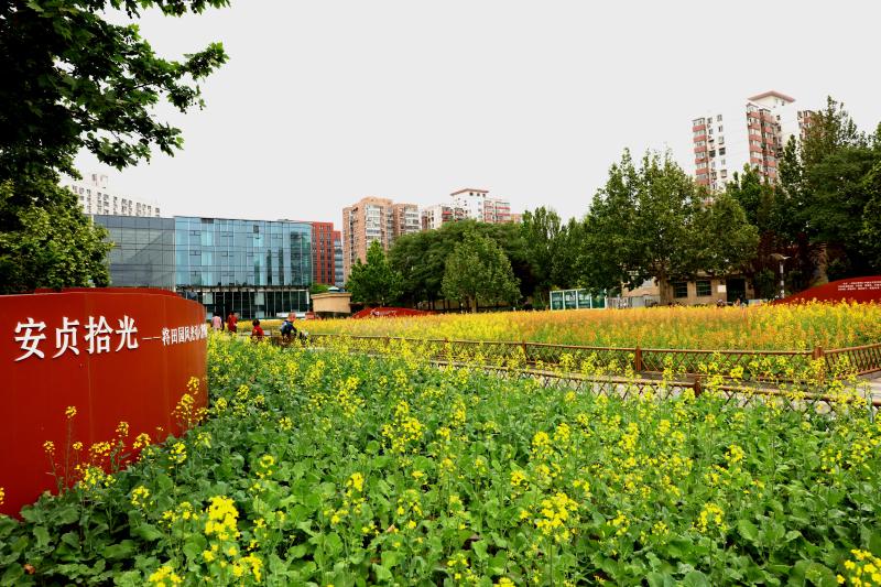 安贞拾光主题广场1500平方米的五彩油菜花陆续绽放,安贞街道将在这里举办综合市集体验活动。史超齐 摄