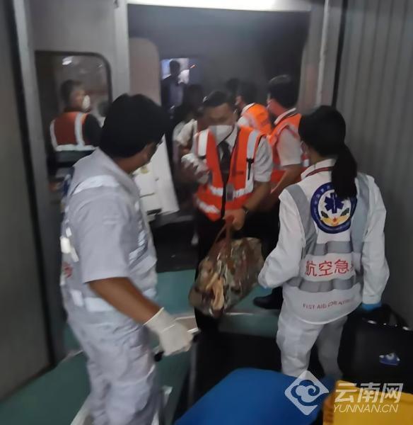 此时,东航云南地服人员、机场急救组早已等候在停机位,23时41分,舱门开启,乘务长与地服人员细心交接,为断指幼儿加油鼓劲,送上全体机组成员对其的祝福,23时43分,受伤幼儿同家人乘坐机场急救中心救护车驶离机坪前往医院。