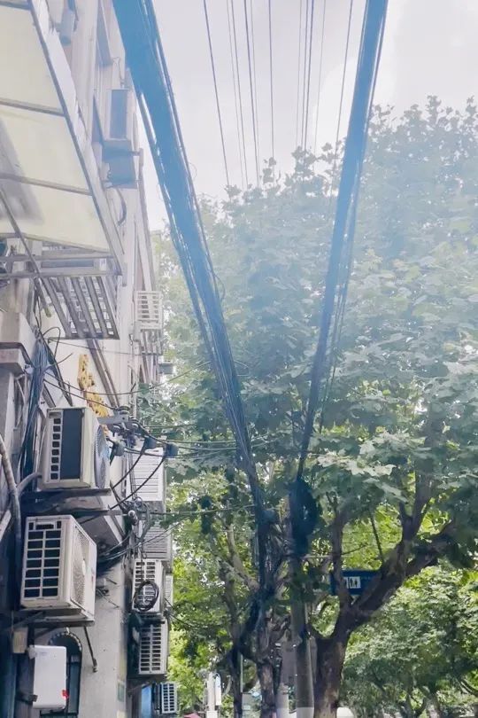 6月14日,威海路上的电力架空线。澎湃新闻记者 邹桥 图
