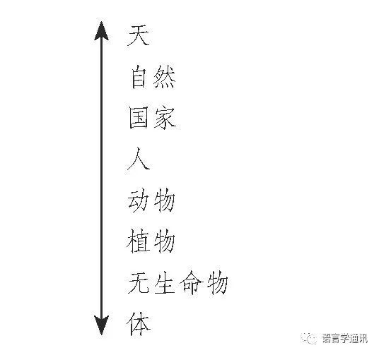 当存在链中某个层级的概念被用于理解另一个层级的概念, 即发生隐喻思维。隐喻思维可以沿着存在链上行, 通过一个较高层级的始源域来理解一个较低层级的目标域 (如[动物是人]) ;也可以下行, 通过一个较低层级的始源域来理解一个较高层级的目标域 (如[人是植物]) 。《诗经》中的大多数比喻表达归属存在链隐喻, 而其中的大多数为下行隐喻。