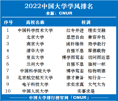 排名结果显示,中国大学学风排名第一的是中国科学技术大学,其次为北京大学,南京大学。另外,兰州大学、电子科技大学等表现亮眼!大学学风越好,其升学表现也越优异。