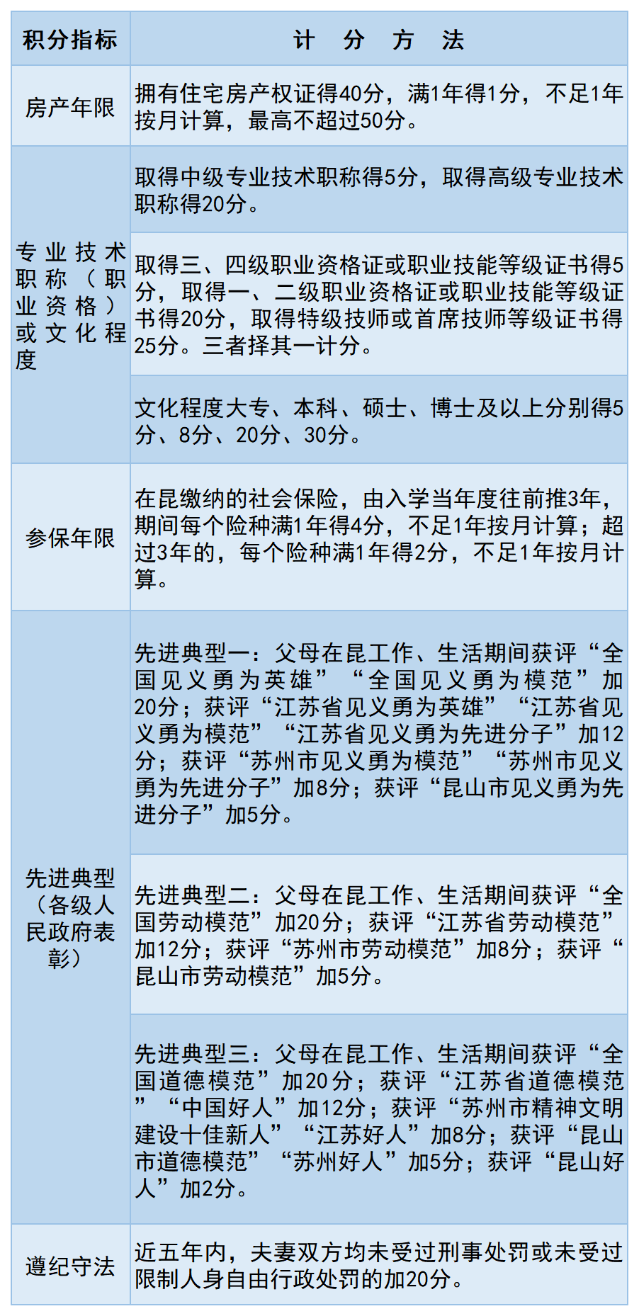 (2)2013年4月1日起在昆山缴纳社会保险后异地转出,于2023年4月30日前再次转回昆山的,期间转出转入的在昆缴纳的社保可按社保计分方法进行计分。