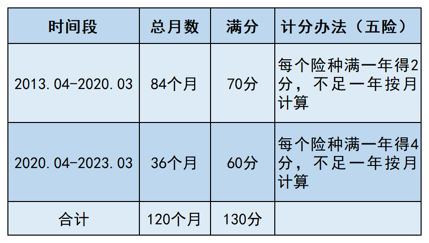 (1)2013年4月1日—2023年3月31日期间在昆缴纳的社保按社保计分方法计分。