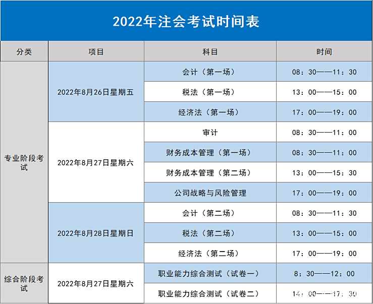 2022年注会报名简章发布!报名、考试及查分时间确定!