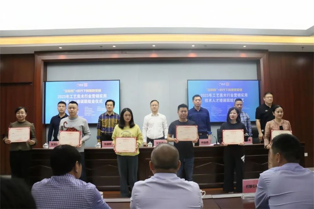4月25日,由泉州市城镇联社指导,县委人才办、城镇联社、人社局、工信商务局、科协、雕艺办联合举办的《“互联网+”时代下的智慧营销》—2023年工艺美术行业营销实用技术人才培训班在城建集团大楼举行结业仪式。