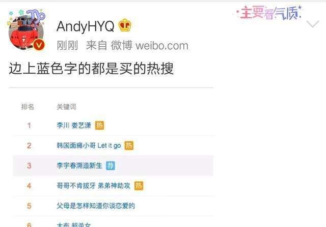 黄奕的前夫黄毅清,就曾在微博发文个直言别明星买热搜、指责个别明星虚伪,而且还公开安慰带lv帽子的贾乃亮。