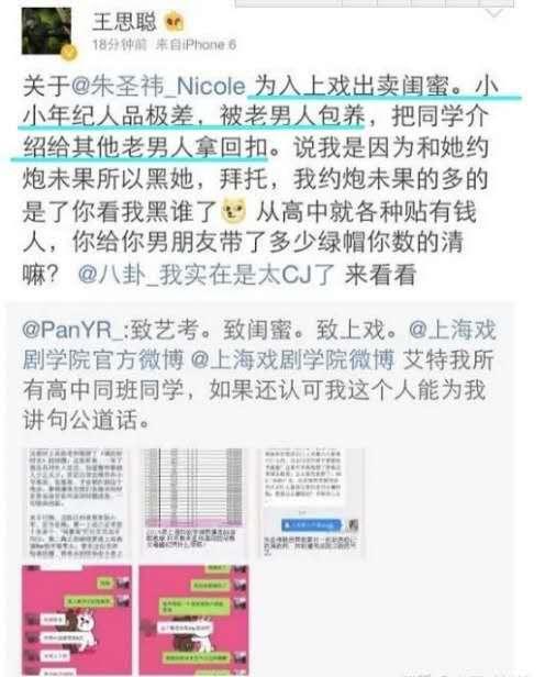 虽然潘润雨被录取是名不正言不顺,但是朱圣祎的行为也很不道德,所以作为潘雨润朋友的王思聪才会公开指责朱圣祎。
