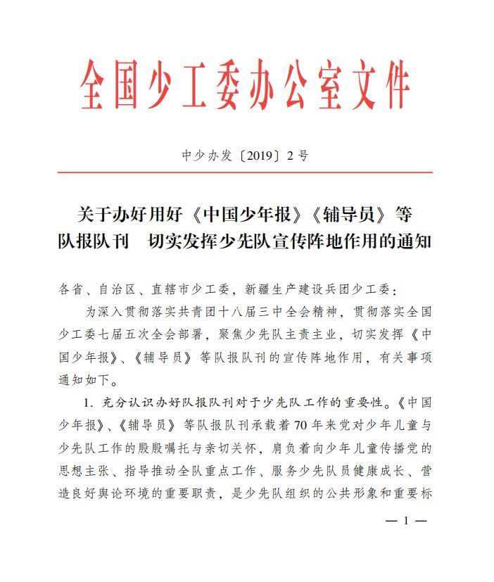 近日,全国少工委办公室、中国少年儿童新闻出版总社已下发: