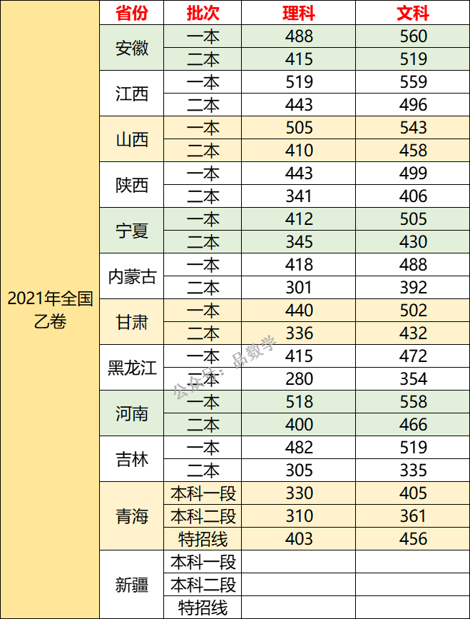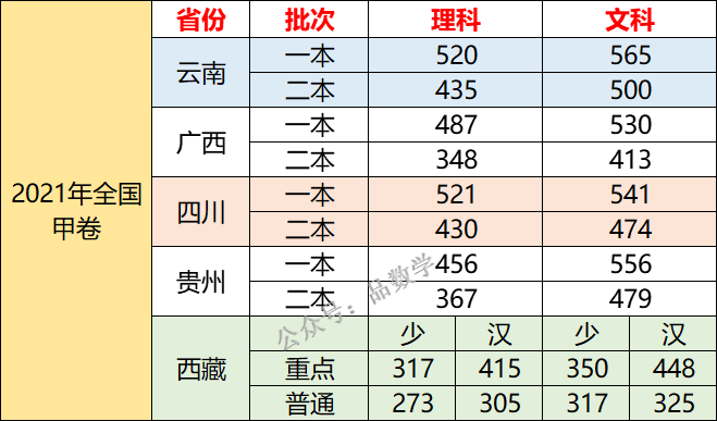 2021年全国各地分数线全汇总(全国甲卷、乙卷、新高考1卷、2卷)