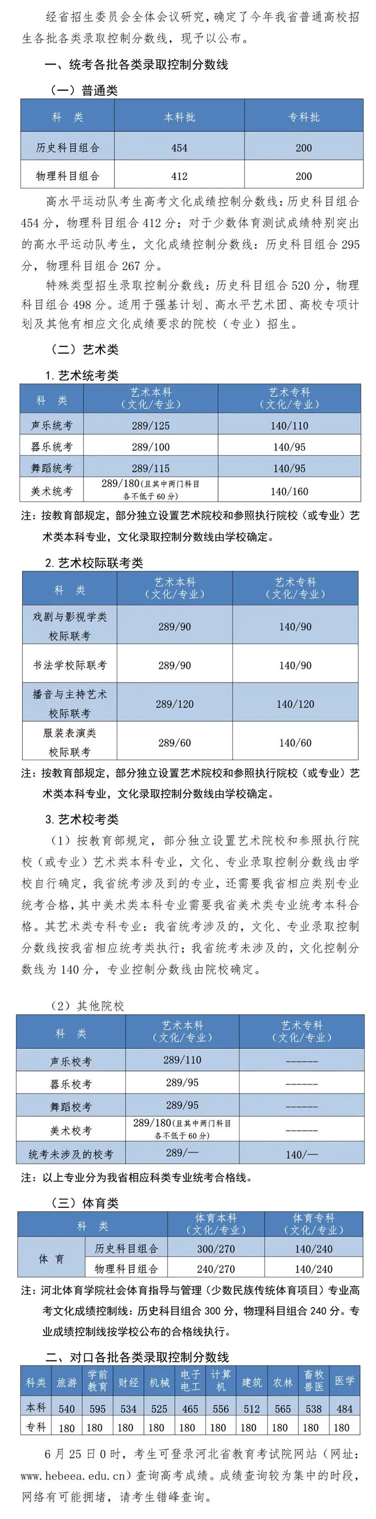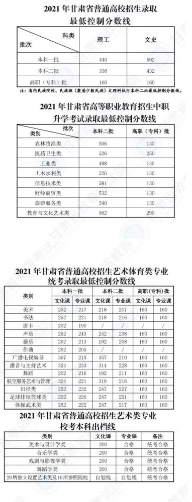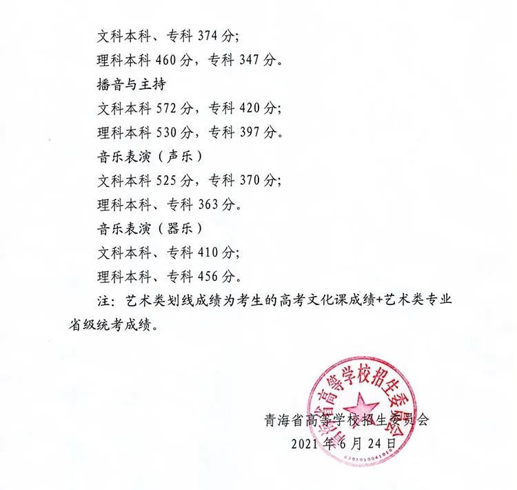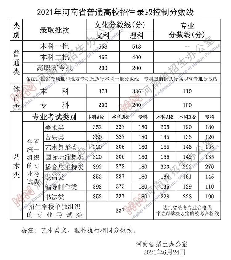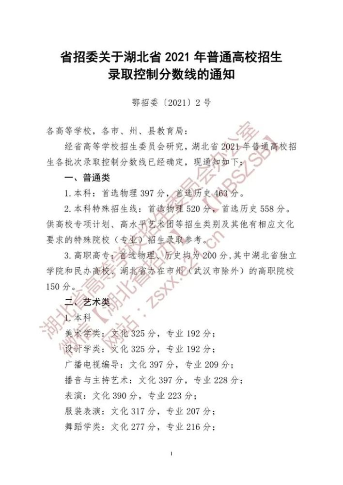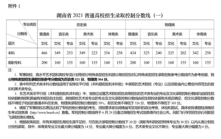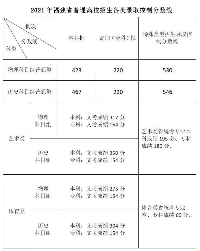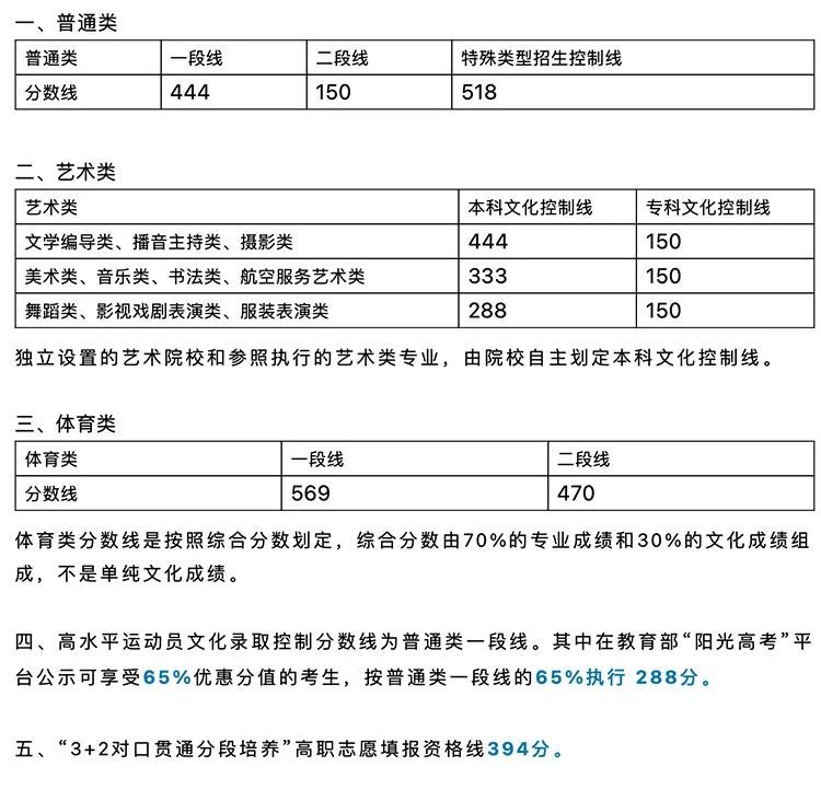 2021年普通高考艺术类、体育类本科批次录取控制分数线确定。