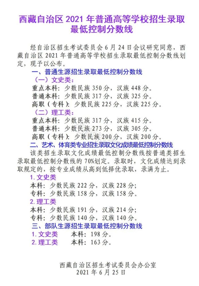 经省招生委员会研究决定,广东省2021年普通高校招生各批次录取最低分数线如下: