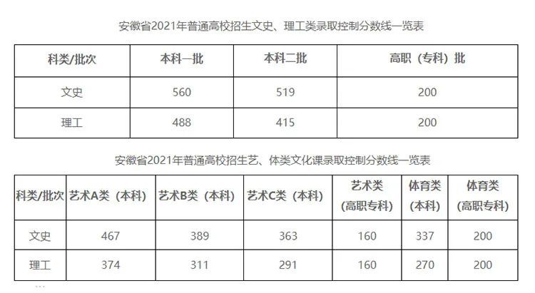 6月23日上午,安徽2021年高考各批次录取控制分数线公布。