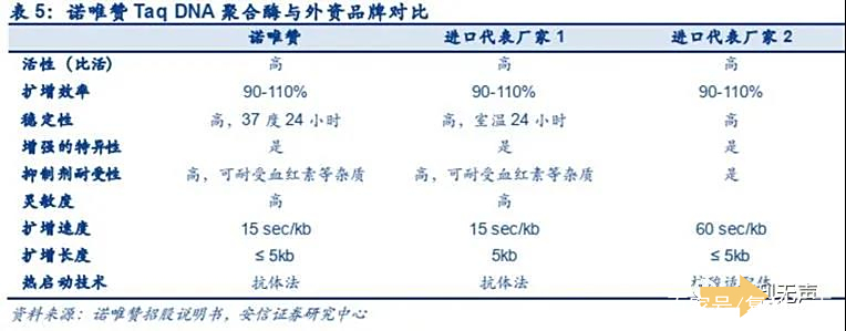 以诺唯赞的TaqDNA聚合酶为例,关键指标基本达到国际领先水平。