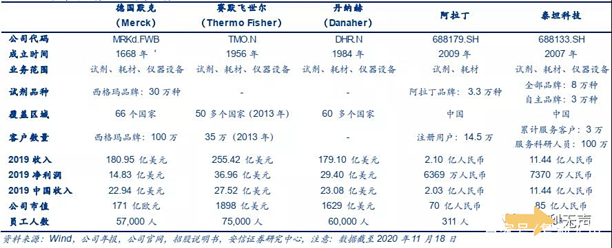 虽然与德国默克、赛默飞世尔科技、丹纳赫等全球龙头相比,国产试剂在品种数量、客户数量、覆盖市场、收入利润规模等多个维度还存在较大差距,但未来的成长空间也更大。