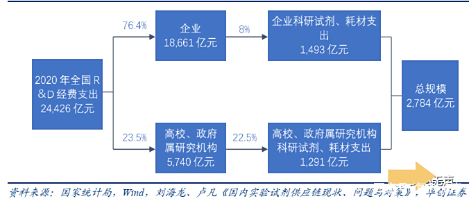 2020年企业、高校、政府属研究机构科研试剂及耗材支出估算