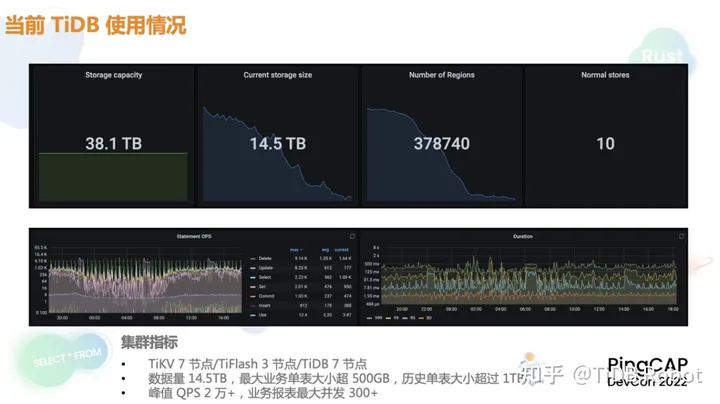 如果与管理 MySQL 集群相比,数据备份、硬件故障处理、主从节点管理等相对都比较麻烦,但 TiDB 基本可以做到轻量级维护,后期云化之后可能会更进一步降低运维成本。
