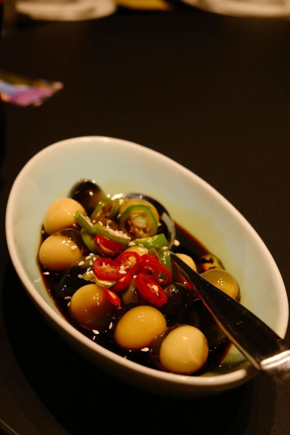 蛋黄南瓜,以前每家学校的小餐馆都有。很家常的菜,就是寻常味道。而尖椒皮蛋,夏天吃口感很清爽。我很喜欢这种黄金皮蛋清凉的口感。