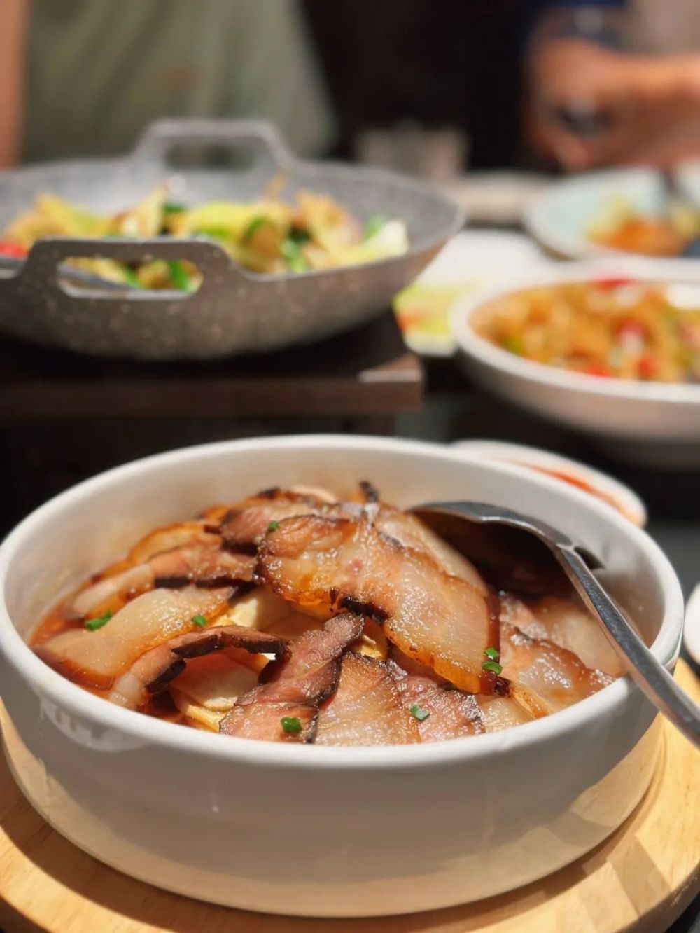 酱肉春笋蒸香干,也很能代表杭州的一道家常菜。我们这到冬天很多人家里就会做酱肉挂在窗台。酱肉会选肥一些,这样渗出的油脂融合酱香味,就渗入到笋片和豆腐干里,那个吃起来就很带感。