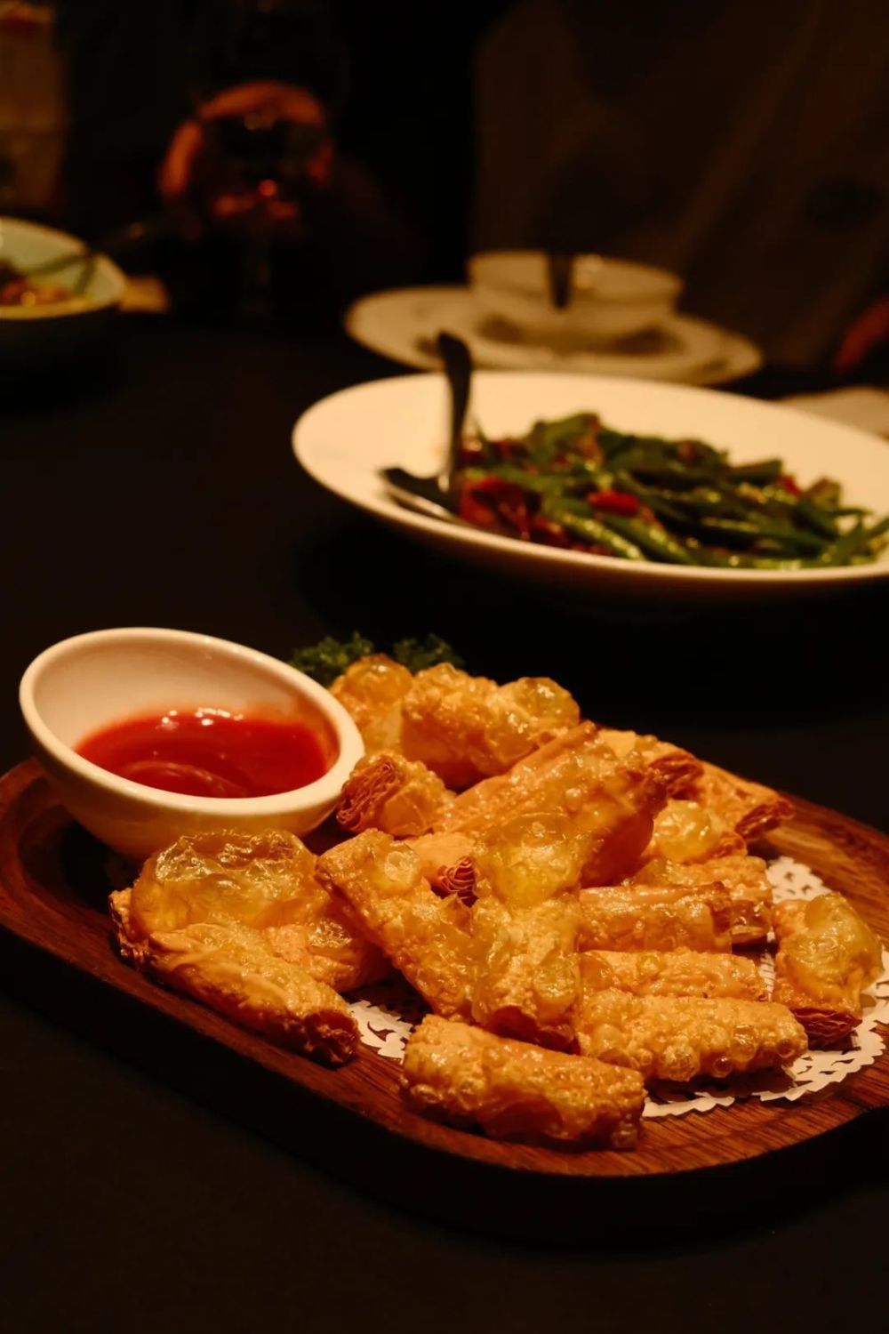 干炸响铃,沸油出锅,薄如蝉翼 脆如响铃。每一口都能感受到层叠酥脆的感受,蘸着番茄酱,像是吃零嘴一般停不下来。