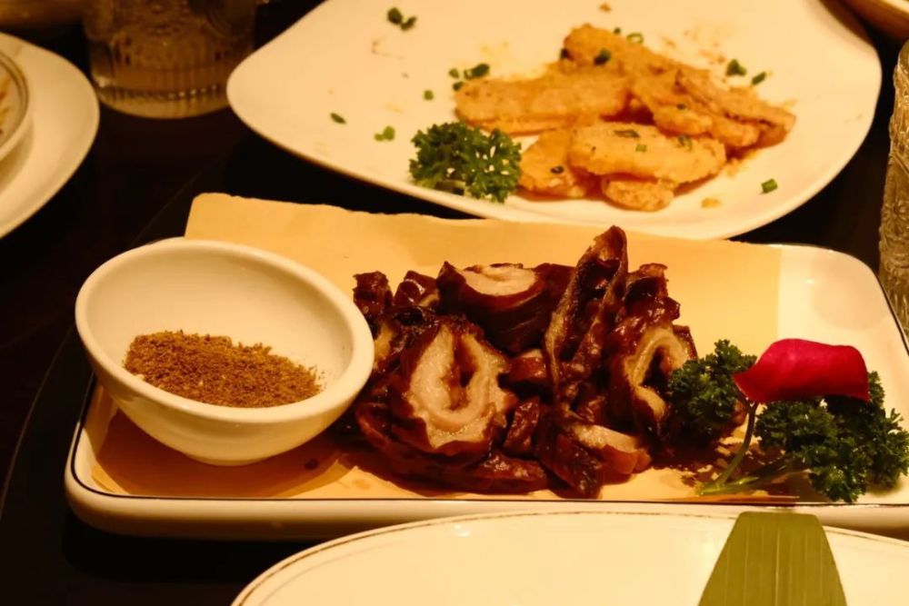 里面能看到很多杭州的代表菜,比如:酱鸭、响铃、西湖醋鱼、油淋大肠、叫花鸡等。但比较欣喜的是也还有很多新菜,以海鲜为主,整体菜的配比来说比较丰富。