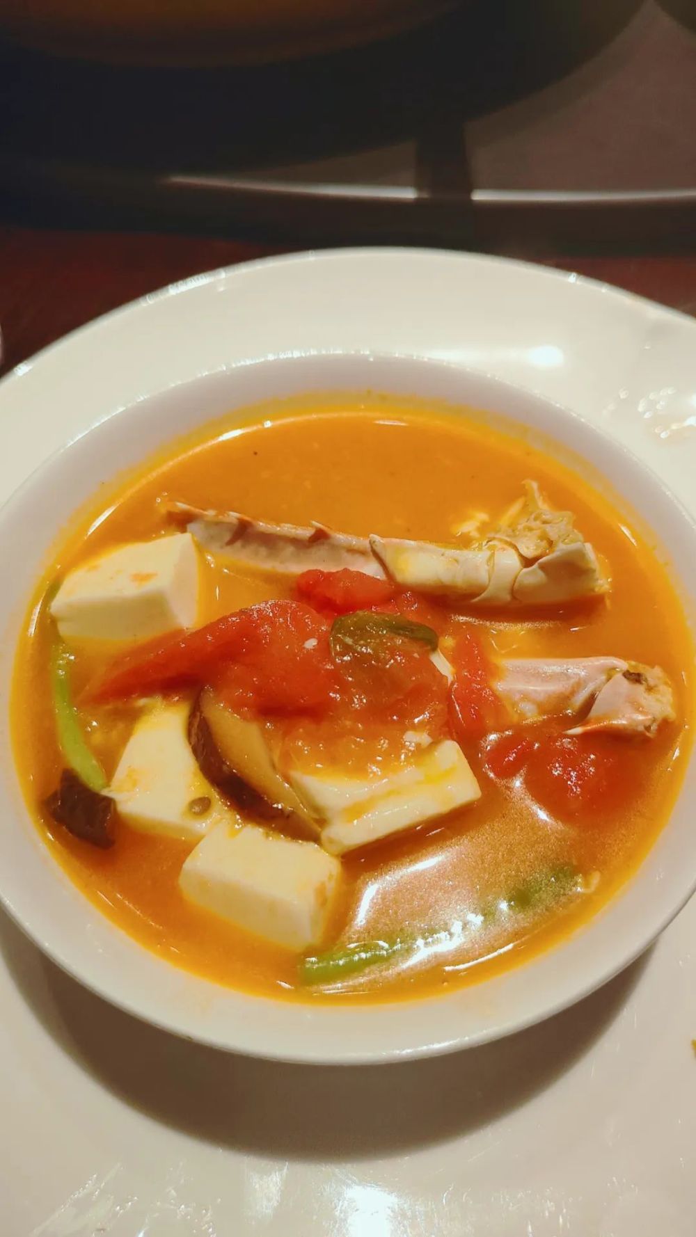 店里主推的汤也蛮有趣的,是梭子蟹番茄豆腐汤。夏天吃这个,可比吃老鸭、鸡汤来得舒服。服务员给每人分了一碗,汤底喝起来像是罗宋汤一般开胃。而蟹肉新鲜,肉饱满,清甜。