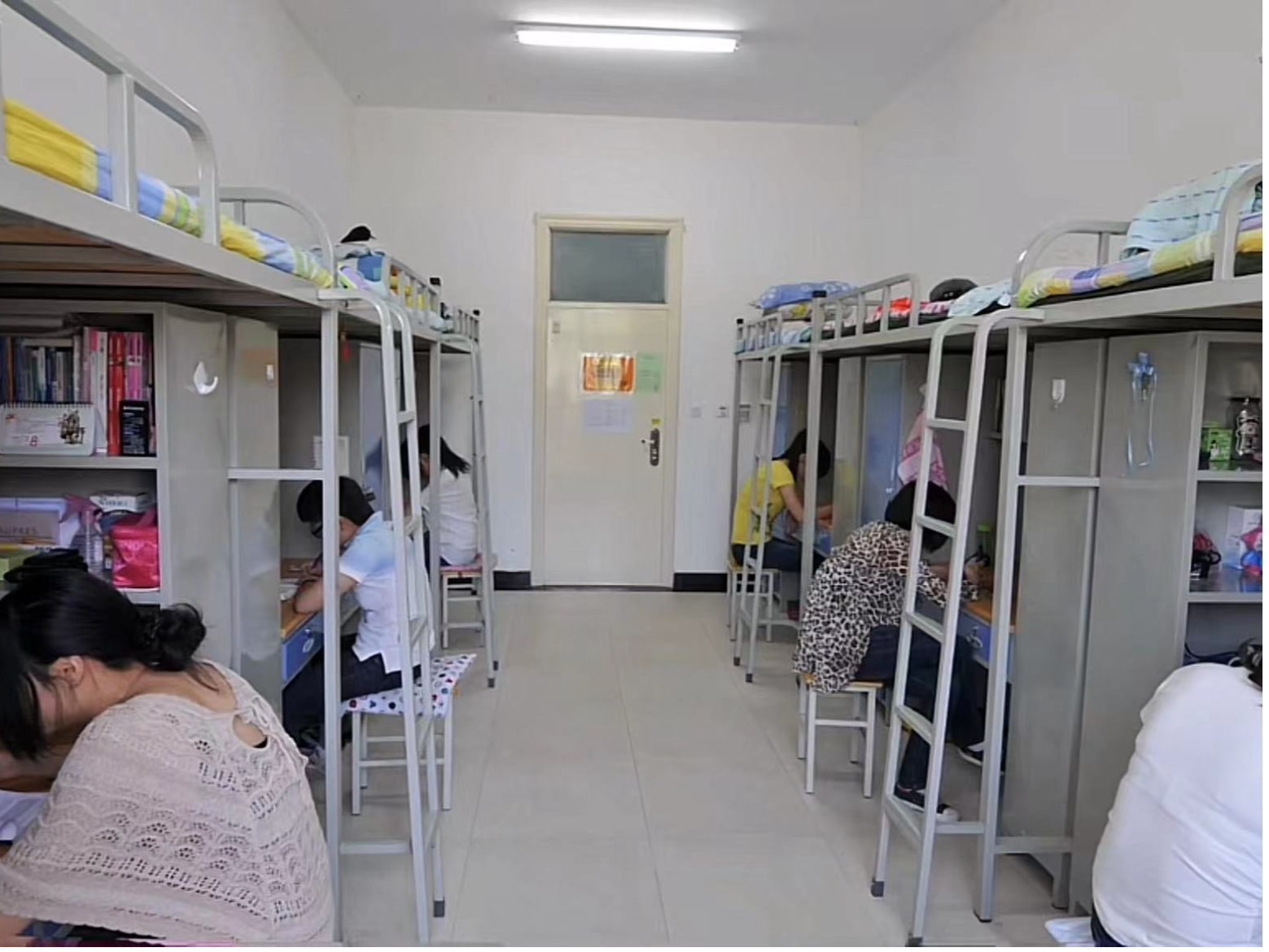4.床铺:床只有床板,什么都需要自己带,学校有卖被子的(一套),新生也不用去那么早就为了抢床铺,其实你待久了就发现,在哪个床都一样选哪个柜子也都一样,上床下桌还没有单独的上下铺好爬,甚至我们待久了都很羡慕下铺的觉得很方便