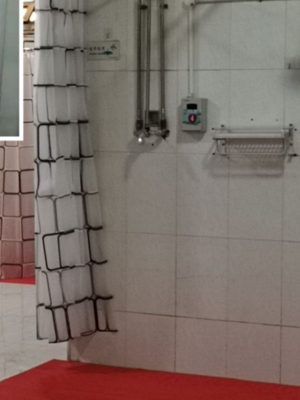 20.澡堂:只有隔帘,有柜子,跟外面的澡堂差不多,需要用学生卡刷,一次刷一块,一分一分的扣