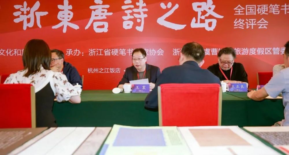 在大赛正式终评前,本次大赛组委会执行主任、浙江省硬笔书协主席王震主持召开了评审预备会,汇报了大赛作品来稿情况和初评情况,并介绍了此次终评的奖项设置和书体名额分配以及评审、监审原则事项。