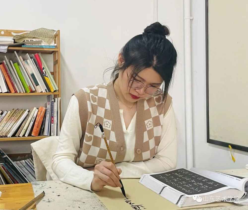 怀揣着对书法的热爱,踏入了山东艺术学院的校门,她爱国爱党爱校,在思想上、组织上都积极要求进步,平时重视政治思想和道德修养的提高,自研究生入学便递交了入党申请书,积极向党组织靠拢。作为一名预备党员,她以优秀党员的标准来严格要求自己,不断加强对党性的认识,不断加强对党史的学习,不断提升自己的思想高度。她将党员标准贯穿于生活,从身边一点一滴的小事做起,尊敬师长,关心同学,乐于助人,虚心求教,严以律己,始终坚持为人民服务的宗旨,保持自身的先进性,具有一名党员应有的责任感,为自己的国家、社会奉献出自己的力量。