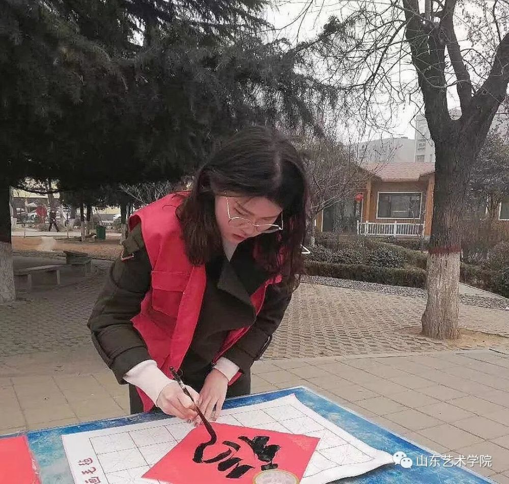 紧张的学习生活之余,王子元还尽可能抽时间带动和帮助其他学院、其他专业的师生练好书法。2020年他积极参加山东艺术学院书法社团,并担任副社长一职,与各学院的老师、同学交流书法。他参与创办的“翰墨云章”志愿者团队通过义卖、送春联等各种形式在校园内大力宣传书法艺术,扩大了学院知名度,并成功引导许多同学对书法产生了浓厚的兴趣。他还在“全国第十二届书法篆刻展览”等国家和省级多个大型展览里担任志愿者,用饱满的热情为前来观展的社会各界人士讲解书法这项艺术的伟大魅力,使广大观众享受书法艺术盛宴的同时又获得了丰富的专业知识。凭着热情和努力,王子元在个人书法创作水平不断提高的同时,吸引和带动更多的人们融入到了书法这片传统文化的热土中。