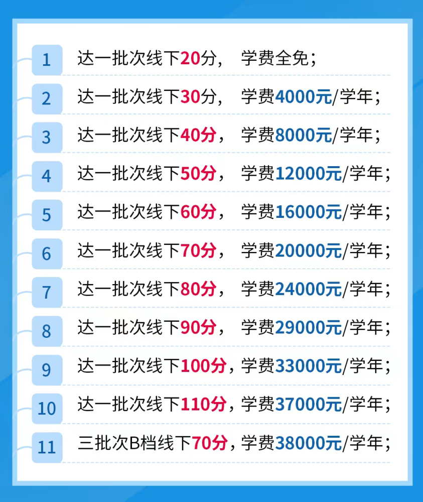 1、学费:复读班全部费用根据中考成绩实行分层梯队学费政策;