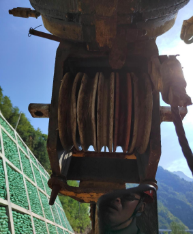 图4:大钩顶端挤压的痕迹图5:大臂顶端滑车组被挤压变形
