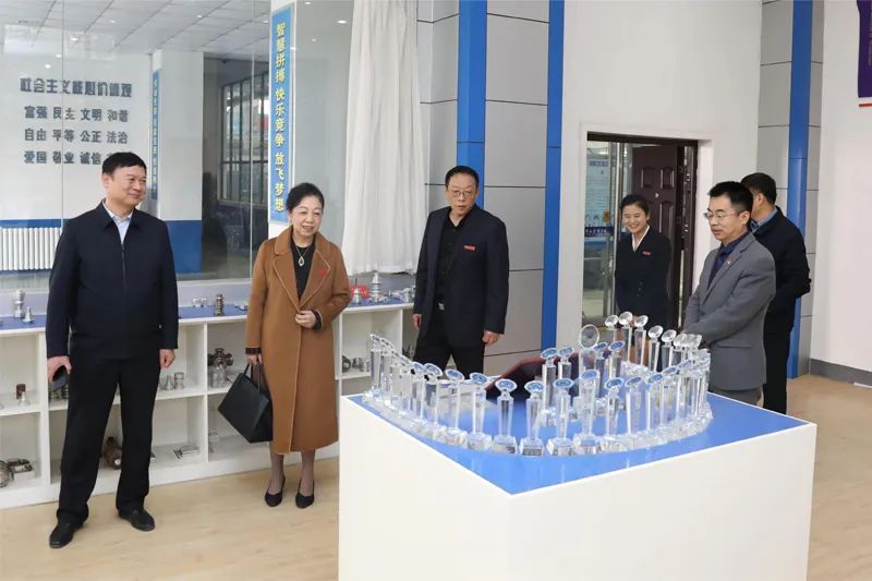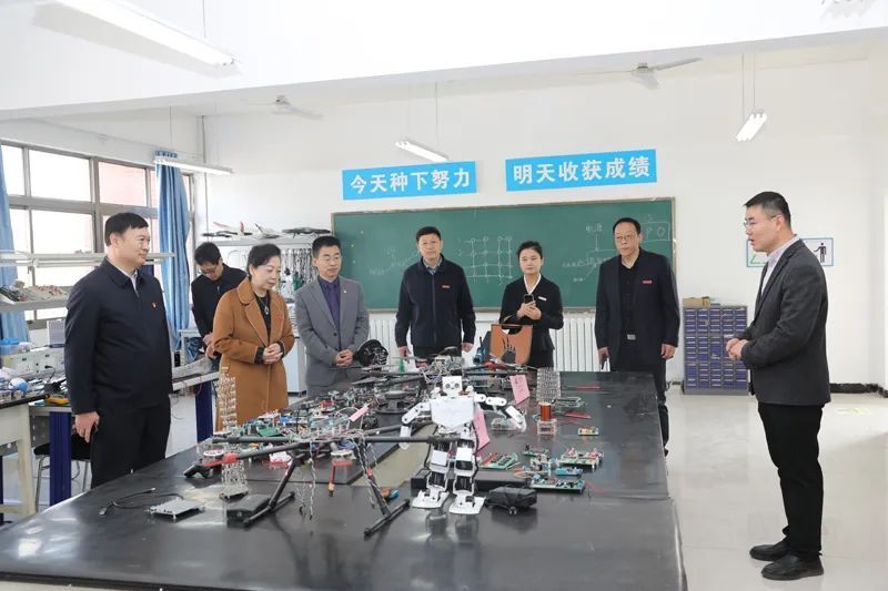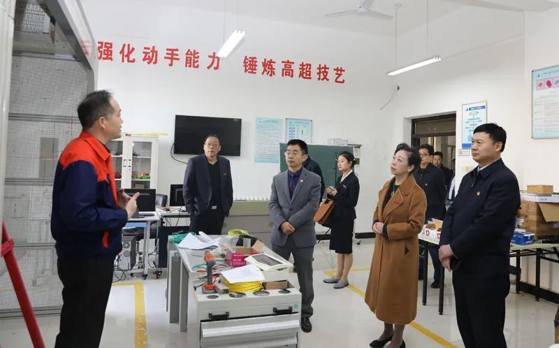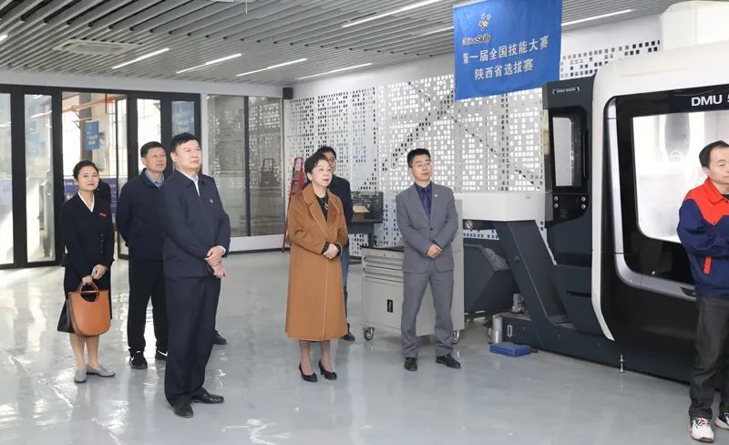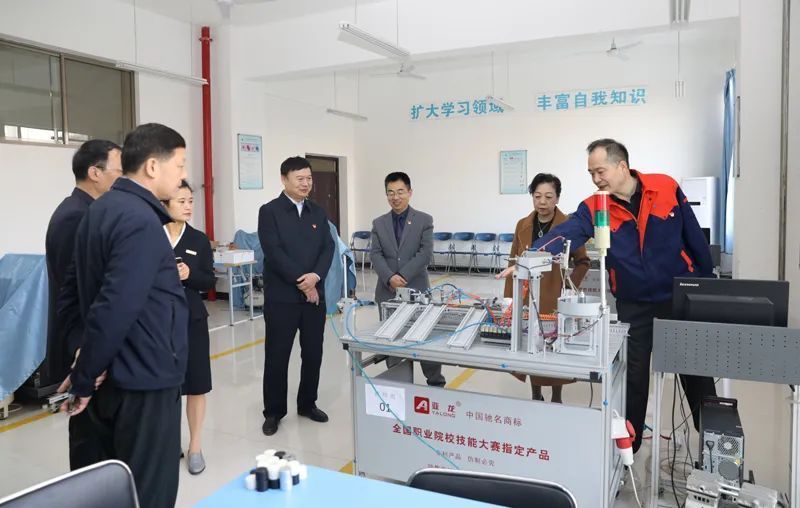 雷亚萍一行先后参观了汽车实训基地、京东电商校园实训中心、机械加工实训车间、数控车(铣)实训车间、PLM数字化工厂体验中心、数控维修实训车间、三坐标精密测量室、五轴五联动(DMG)高端数控加工中心、机电专业一体化教室、机器人焊接功能展示、教学型机器人功能展示等,实地考察了学生技能实训情况,详细了解了相关设备的规模、技能及实训效果等。