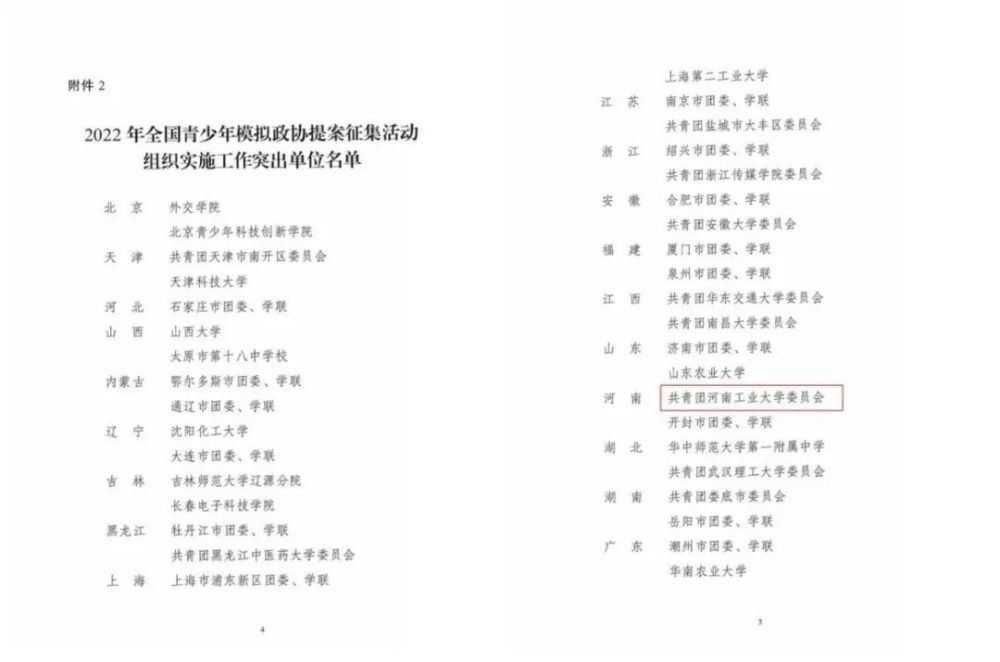 近日,团中央开展的2022年“全国青少年模拟政协提案征集活动”落幕。我校共报名参赛361件提案作品,吸引全校近1500余名学生积极参与,获得众多校内外专家学者的专业辅导。最终,两件作品入围省级推荐,我校获全国青少年模拟政协提案征集活动组织实施工作突出单位通报表扬,是全省唯一获表彰高校。