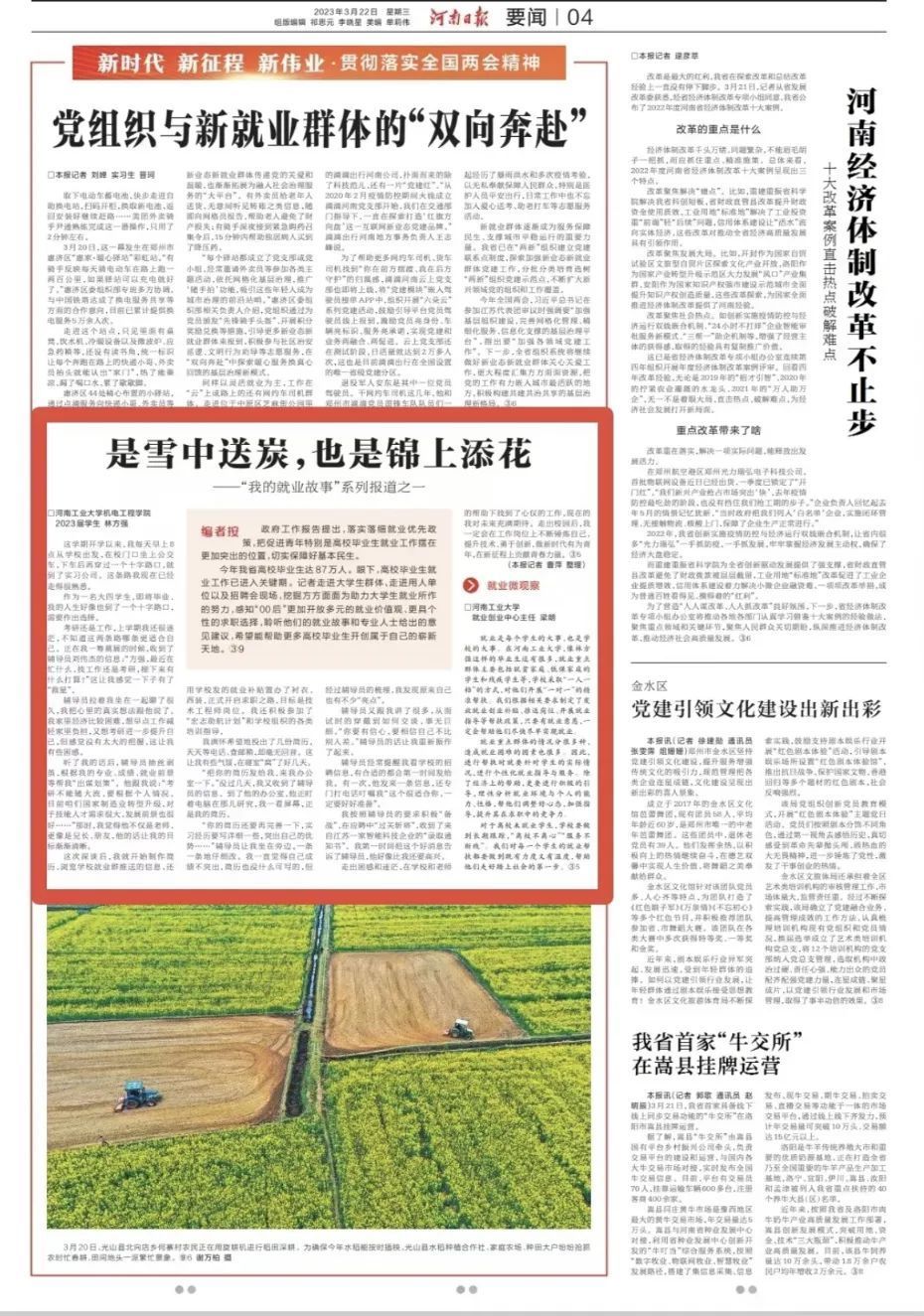 《河南日报》:是雪中送炭,也是锦上添花——“我的就业故事”系列报道之一