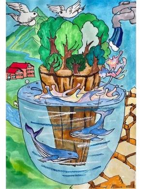 在自然界中,水在太阳光和地心引力等的作用和影响下不停地运动、转化,自然界的水在不断地循环。而在文中,水循环少了严肃古板,多了几分天真活泼,俩兄妹——水汽、水滴,一直在延续他们无止境的环球之旅。